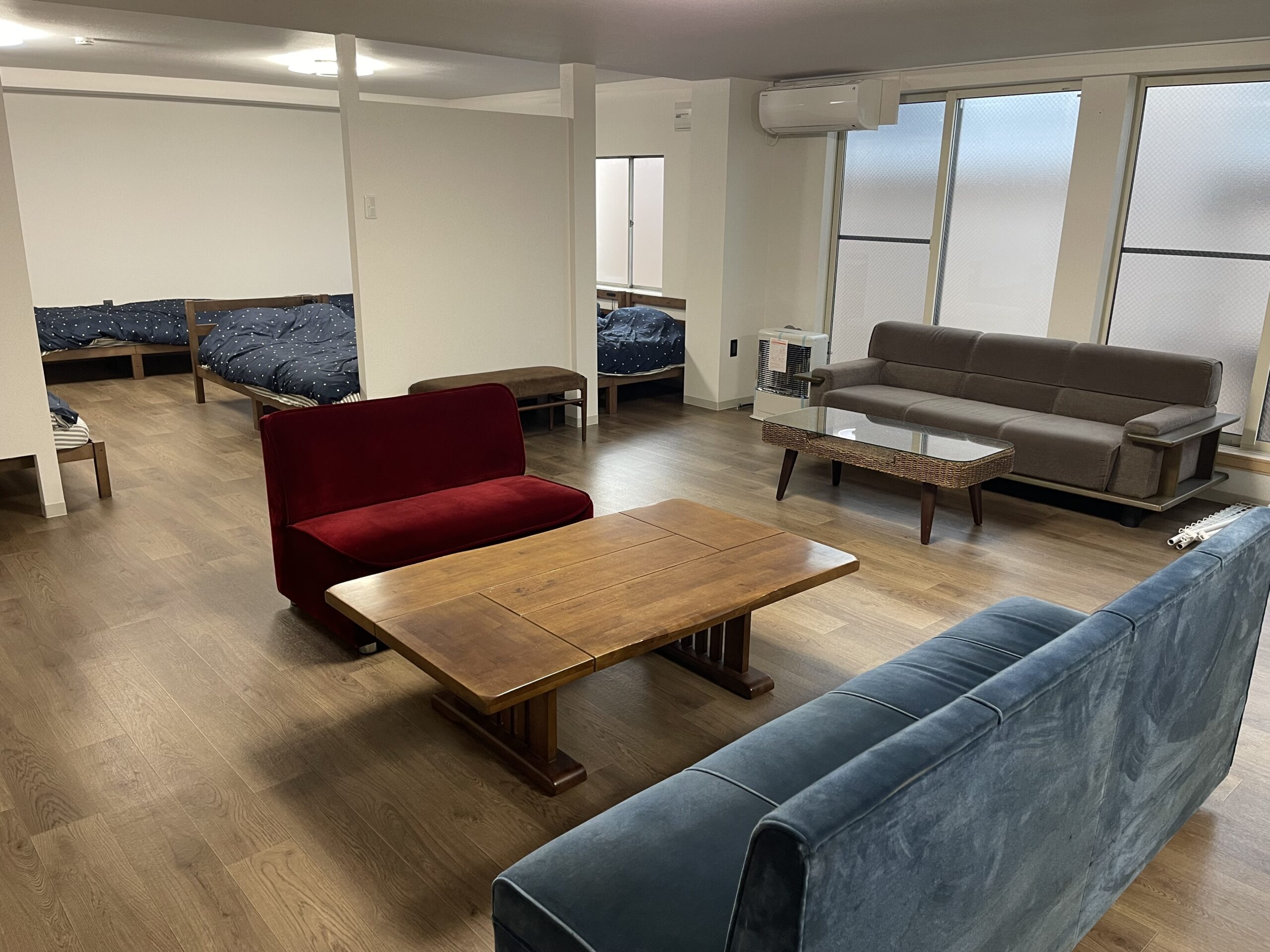 2階と3階共に一部屋貸しルームを備え、プライベート感たっぷりの宿泊が可能。各部屋はシンプルながら清潔で快適な内装。ベッドはそれぞれ8台づつで、Wi-Fi、冷暖房、冷蔵庫、トイレ、シャワー室完備。共用スペースがないので、プライベート感が満載。長期滞在にも対応。カップルやファミリー、大人数での宿泊にオススメ。小樽の夜を満喫した後、歩いて帰れるのが魅力。繁華街にあり、近隣にコンビニが数件あるので、急な買い出しや、夜中にお腹が減っても安心(笑)